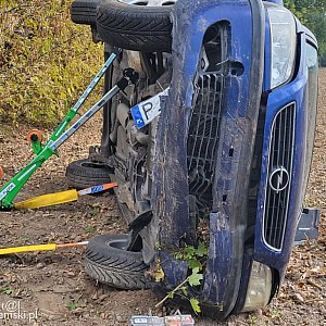 Dzisiaj przed godz. 16.00 doszło do niebezpiecznego zdarzenia drogowego w Kiełczynku. Kierujący oplem zafira jadąc od strony Zaborowa w kierunku Książa Wlkp. wypadł z drogi i dachował. Ze wstępnych ustaleń wynika, że kierujący wystraszył się samochodu wyjeżdżającego z drogi podporządkowanej. Spodziewał się, że wyjedzie na jego pas ruchu. W efekcie zjechał na przeciwległy pas, następnie wypadł z drogi i dachował w polu. Mężczyzna sam opuścił pojazd, jest pod opieką ZRM. Droga jest zablokowana.