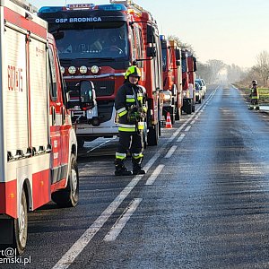 Na drodze w tym miejscu było ślisko. Kierowcy powinni zwracać szczególną uwagę na stan nawierzchni w chwili, kiedy wsiadają do auta i gdy temperatura jest minusowa lub bliska zeru. Służby drogowe nie zawsze w porę mogą zdążyć, piaskarka pojawiła się po godzinie 11 jadąc od Czempinia w stronę Śremu.