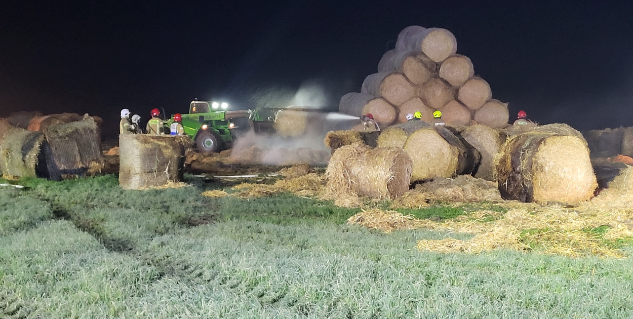 Działania straży pożarnej polegały na gaszeniu palących się balotów oraz zabezpieczeniu miejsca zdarzenia. W wyniku pożaru spaleniu uległo ponad 10 balotów słomy.