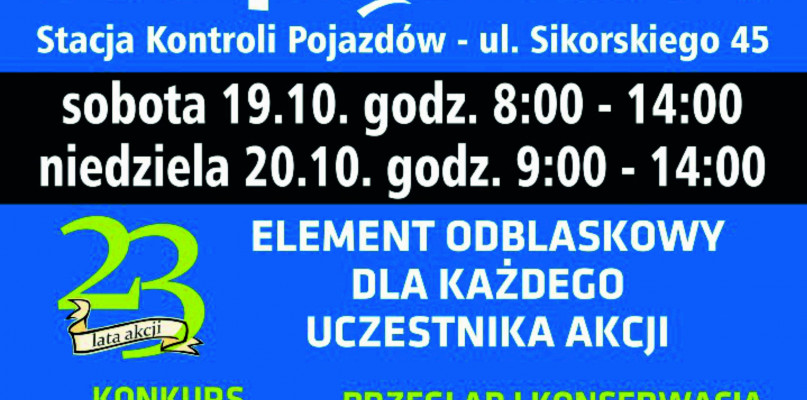 Akcja odbędzie się 19 i 20 października br. na terenie Stacji Kontroli Pojazdów, która mieści się w Śremie przy ulicy Sikorskiego 45.