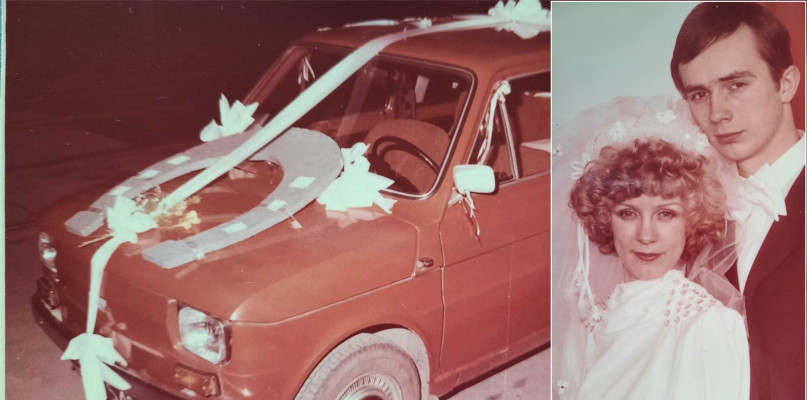 Była to ostatnia niedziela karnawału... Mąż przygotował specjalnie samochód na to wydarzenie – maluch z wielką kokardą, zawiązany jak bombonierka. Wesele mieliśmy w Lubniewicach, pięknej miejscowości nad jeziorem. Na rogatkach czekała na mnie niespodzianka - bryczka, która zawiozła nas na miejsce przyjęcia. Podobno kiedyś miałam powiedzieć, że marzy mi się, aby mieć długi welon, który będzie powiewał za bryczką. Mój mąż to zapamiętał i zrobił mi niespodziankę! Tych niespodzianek mam całe mnóstwo, np. na pierwszą rocznicę ślubu dostałam 12 prezentów, po jednym na każdy miesiąc, a na 30 rocznicę ślubu zabrał mnie do Lubniewic i całą miejscowość objechaliśmy... bryczką (tylko welonu zabrakło). To jest specjalista od niespodzianek, niewyczerpana skarbnica pomysłów. Czasami nawet jestem lekko zawiedziona, jak czegoś nie wymyśli.
