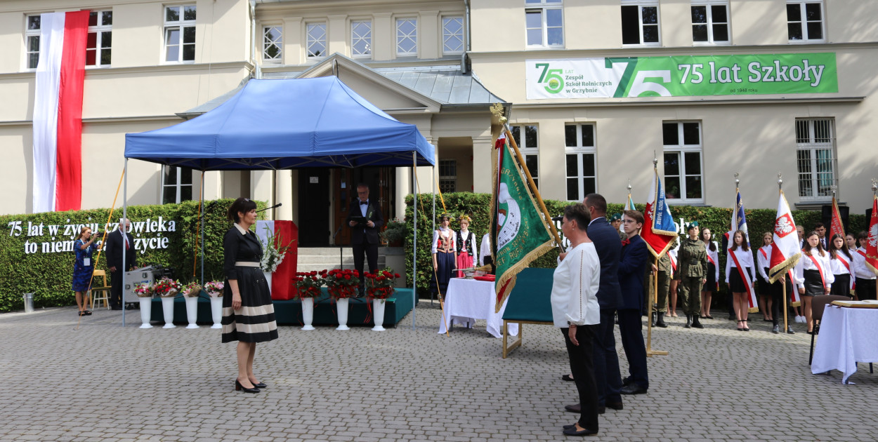 Dzisiaj jest ważny dzień dla Zespołu Szkół Rolniczych w Grzybnie. Szkoła hucznie obchodzi 75-lecie. Z tej okazji na uroczystości spotkali się szkolna społeczność, absolwenci, przedstawiciele firm i instytucji oraz sympatycy. Ponadto szkole nadano nowy sztandar i imię. Wydarzenie przyciągnęło wielu absolwentów mile wspominających swoje czasy w ZSR.