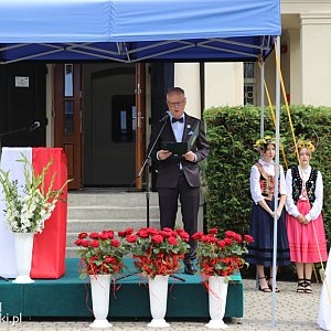 Część oficjalna rozpoczęła się o godz. 12.00 przed głównym budynkiem szkoły. Dyrektor Beata Maciejewska wyjaśniła, że przygotowania do uroczystości tak naprawdę rozpoczęły się już 1,5 roku temu. Przypomniała, że w 1945 r. w Grzybnie odbyły się pierwsze kursy, a w 1948 r. powstała pierwsza szkoła. ZSR w Grzybnie ma już ok. 11 tys. absolwentów.