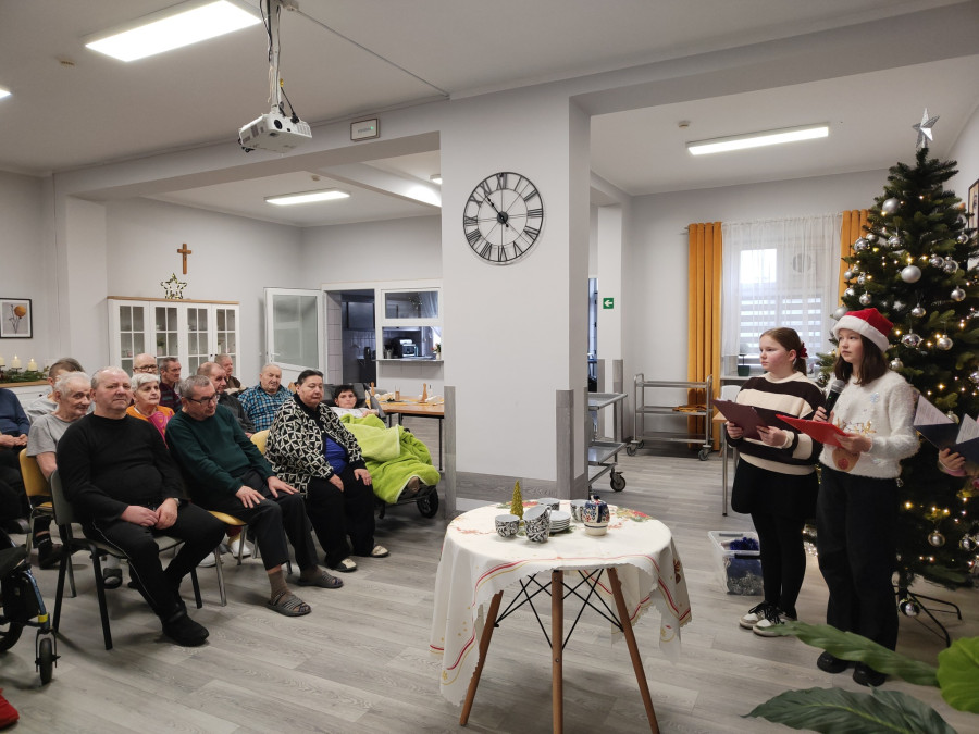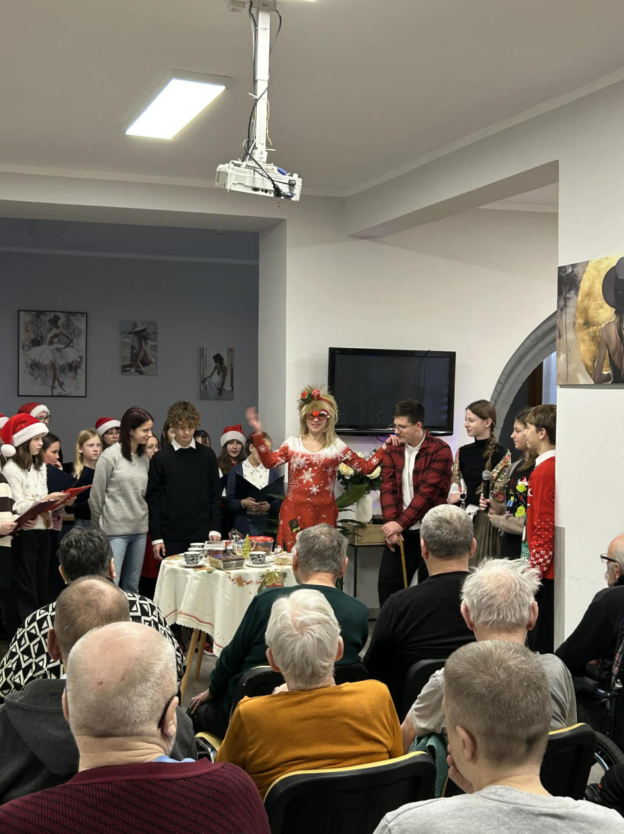 Po części artystycznej sala wypełniła się dźwiękami tradycyjnych polskich kolęd, które wolontariusze śpiewali ramię w ramię z seniorami i podopiecznymi domów pomocy.
