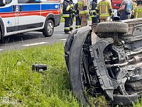 Zderzenie trzech osobówek na trasie Śrem - Chrząstowo. Dwie kobiety z obrażeniami, w tym jedna ciężarna