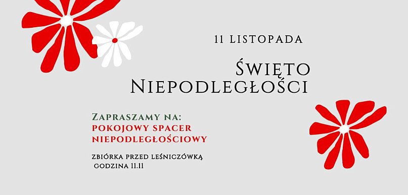 Z okazji Święta Niepodległości organizatorzy zapraszają na doroczny, pokojowy spacer niepodległościowy. Zbiórka w poniedziałek, 11 listopada, o godz. 11:11 przed leśniczówką. Trasa poprowadzi przez las, a jej dokładny przebieg zostanie dopasowany do warunków pogodowych.